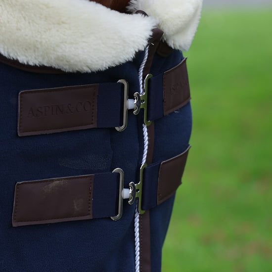 These beautiful high end rugs are double fleece lined with a luxurious fur collar. The pu leather detailing with the embossed logos is the icing on the cake. These are going to be perfect for shows or for use as stable rugs. The luxuriously thick and breathable fleece lining keeps your horse warm without being too heavy and has fabulous moisture wicking capabilities. Ideal to pop on after a wash or for everyday stable wear.